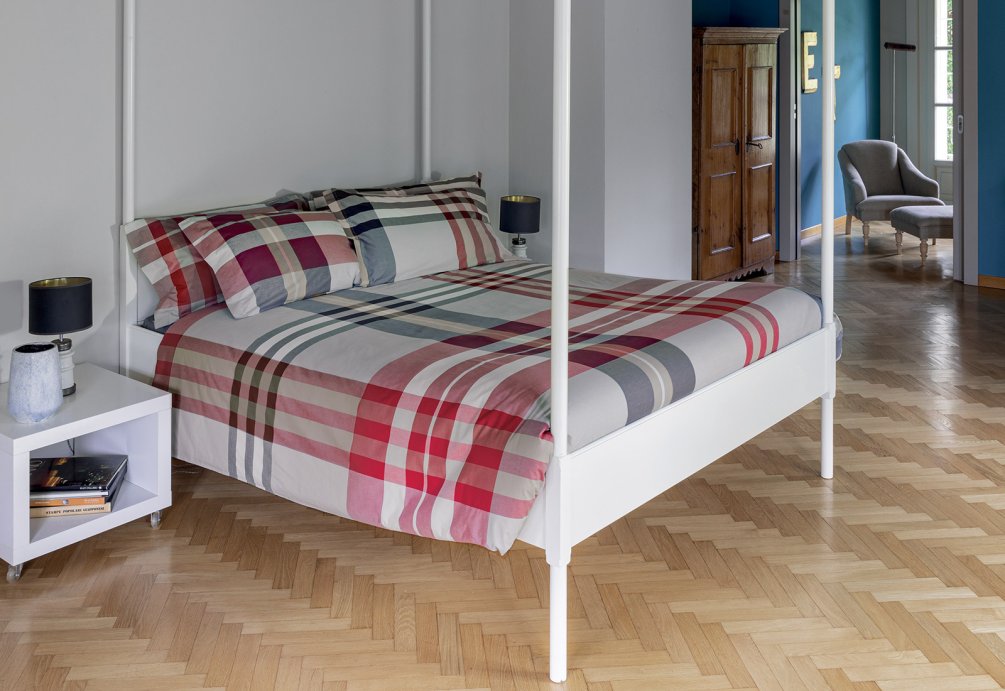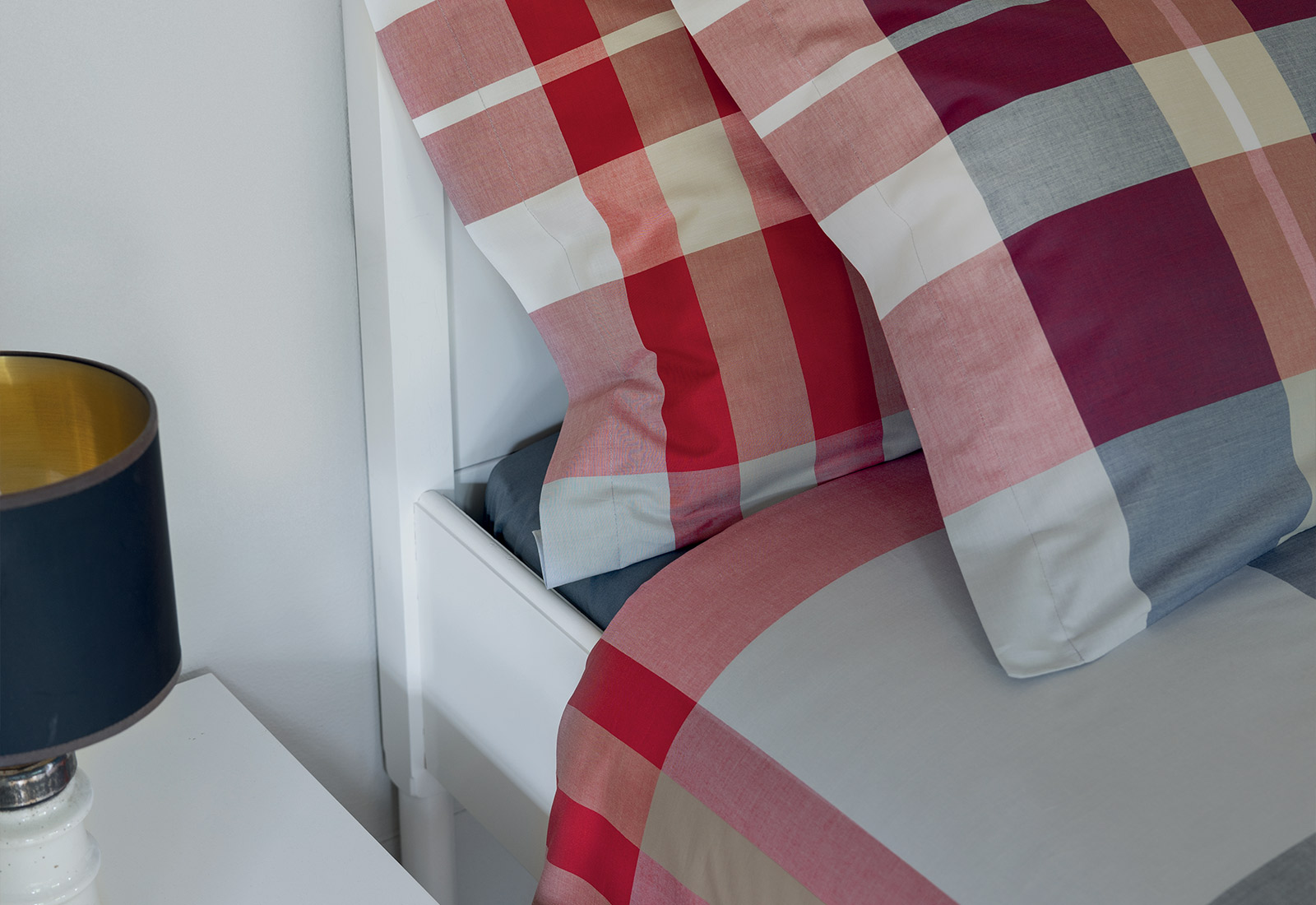 Tessuto Tinto in filo 100% Cotone Pettinato. Colori intensi e durevoli, anche dopo anni di lavaggi. Disegni nitidi e identici su entrambi i lati del tessuto.