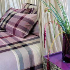 Tessuto Tinto in filo 100% Cotone Pettinato. Colori intensi e durevoli, anche dopo anni di lavaggi. Disegni nitidi e identici su entrambi i lati del tessuto.