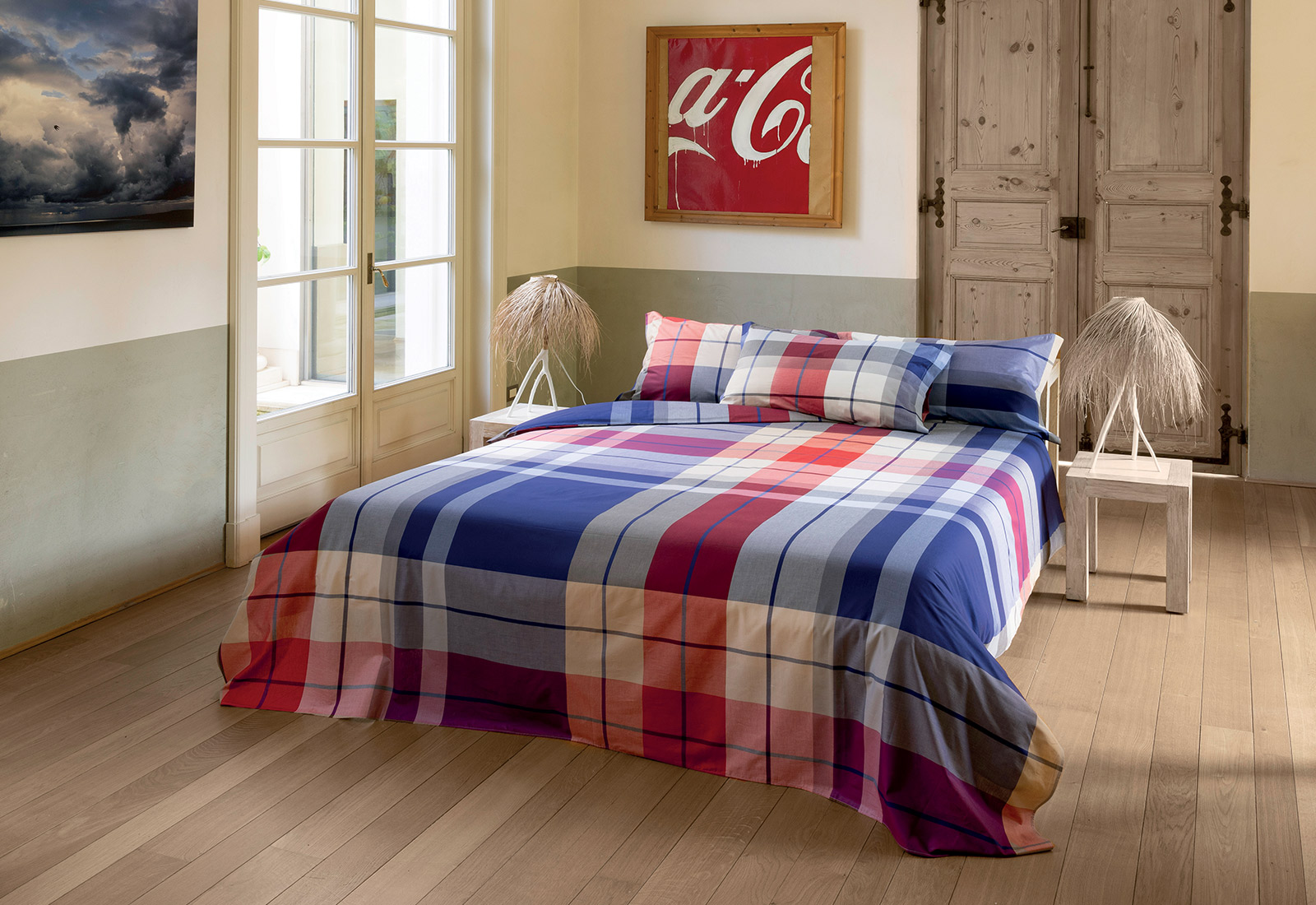 Tessuto Tinto in filo 100% Cotone Pettinato. Colori intensi e durevoli, anche dopo anni di lavaggi. Disegni nitidi e identici su entrambi i lati del tessuto.